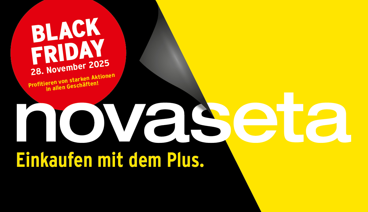 Kommen Sie zum Black Friday in die Novaseta! Am Freitag, 28. November 2025 erwarten Sie spezielle Schnäppchen, Rabatte und weitere Sonderangebote – Jeder Shop hat seine eigenen Aktionen. Wir freuen uns auf Ihren Besuch!